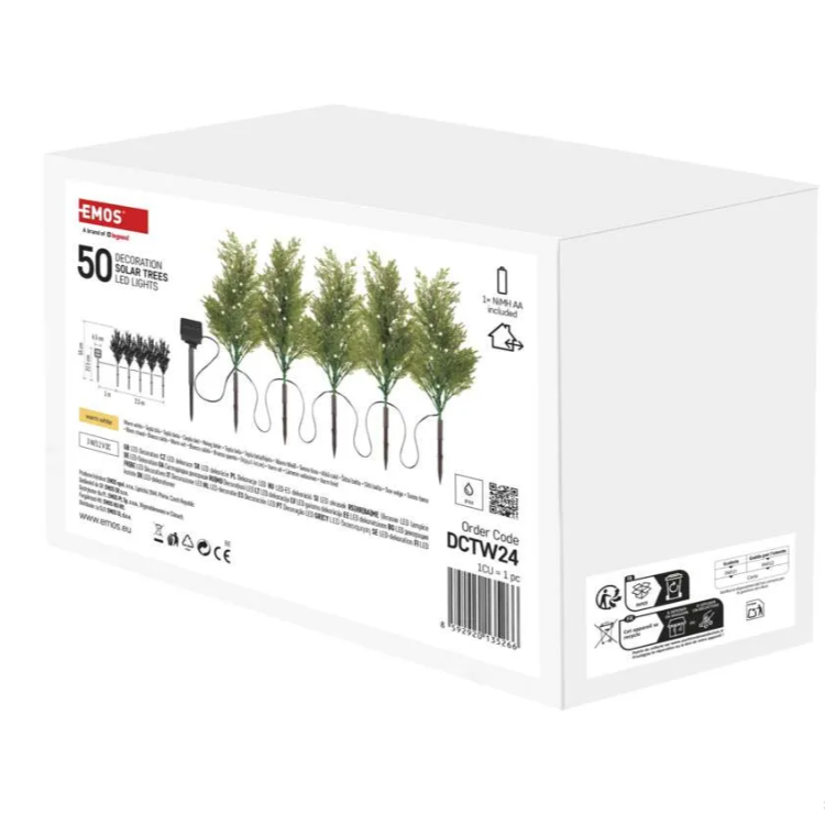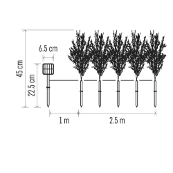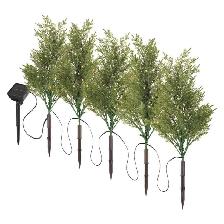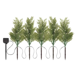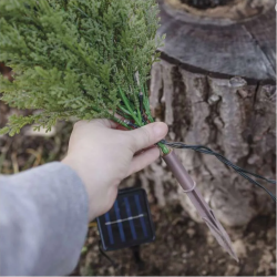 Če iščete kompromis med živimi smrekovimi vejami in preprosto razsvetljavo pri božičnem okraševanju, so naše vejice LED idealna rešitev. Preko čepkov jih lahko preprosto uporabite za okrasitev vrta, balkona ali cvetličnih korit na oknu. V kompletu je skupaj 5 vejic, ki so posute z toplo belimi žarnicami LED. Tako lahko v prostoru pričarate mehko in elegantno osvetlitev. Okrasek je primeren za zunanjo uporabo, v paketu pa ga boste prejeli z eno baterijo NiMH AA.