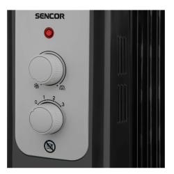 Električni oljni radiator z 11 grelnimi rebri, vhodno močjo 2.300 W in 3 različnimi nastavitvami toplote.