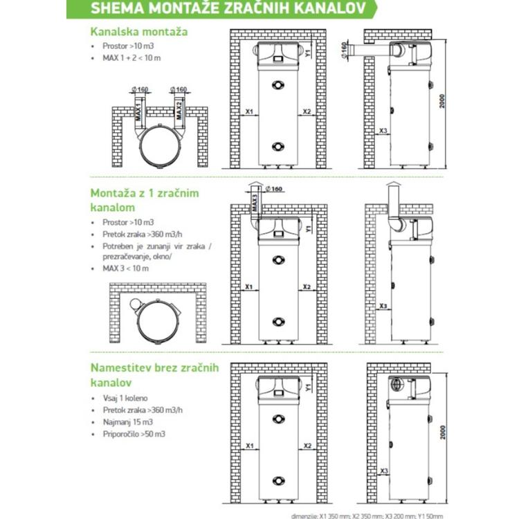 • Bočni zračni kanali pod kotom 45° za možnost namestitve v prostore višine do 2 metra