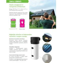 • Segreva vodo do 65°C samo s toplotno črpalko
