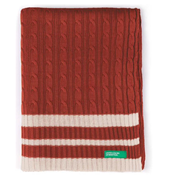 Odeja priznane blagovne znamke Benetton je izdelana iz 100% akrila, kar ji zagotavlja izjemno mehkobo in trpežnost. Združuje visoko kakovost, moderni dizajn in udobje. Certifikat OEKO-TEX zagotavlja, da je brez škodljivih snovi. Živahna rdeča barva bo vašemu domu dodala svežino in toplino. Primerno za pranje v pralnem stroju.