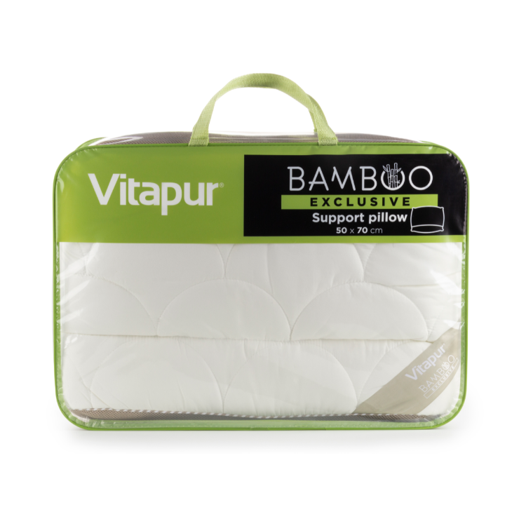 Vzglavnik Bamboo Exclusive Support združuje naravno udobje bambusovih vlaken in možnost prilagajanje višine, ki zagotavlja izjemno oporo vratu v vsakem spalnem položaju - bodisi na trebuhu, hrbtu ali boku. Posebna oblika vzglavnika z višjim in nižjim delom omogoča več možnosti, kako si prilagodiš vzglavnik. V celoti pralen na 40 °C.