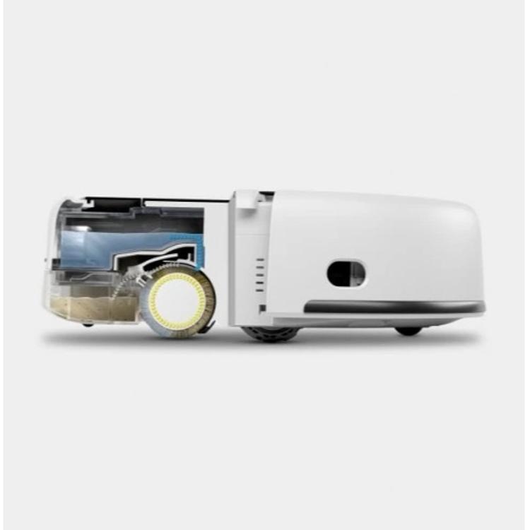 Robotski čistilnik tal RCF 3 deluje s Kärcherjevo preizkušeno valjčno tehnologijo, ki zagotavlja posebej temeljito mokro čiščenje trdih tal.