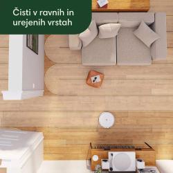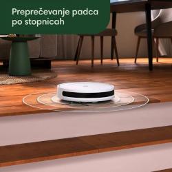 Pametna navigacija metodično čisti v urejenih vrstah, medtem ko senzorji pomagajo pri navigaciji okoli pohištva in preprečujejo padce po stopnicah.