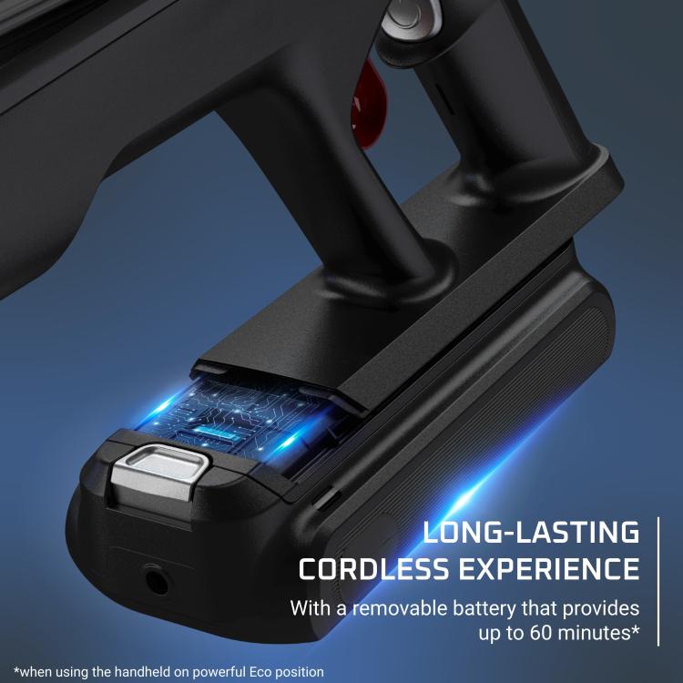 Snemljiva baterija omogoča do 60 minut močnega in neprekinjenega sesanja za učinkovito čiščenje celotnega doma.