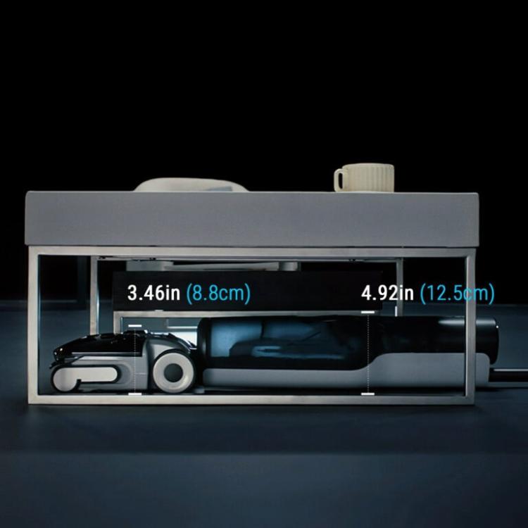 Nobena površina ni spregledana, niti pod pohištvom. Z močnim sesanjem v ozkih prostorih, zahvaljujoč 12,5 cm tanki zasnovi, ki ohranja polno sesalno moč pri 0°. Ultra-nizek profil omogoča dosego vsakega kotička brez puščanja prahu za seboj.