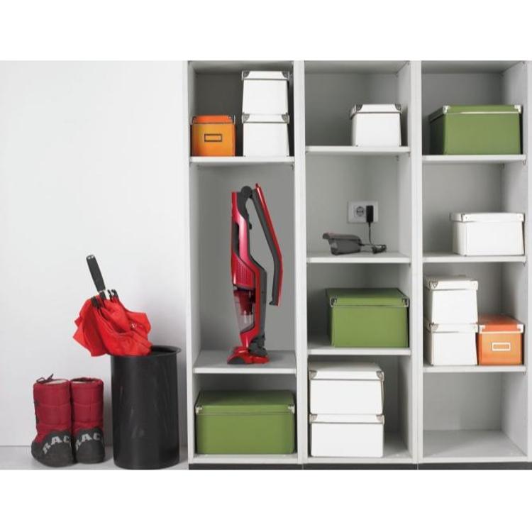 Popolnoma zložljiv ročaj omogoča shranjevanje v manjših predelih. Sesalnik lahko postavite tudi na polnilni dok, da bo pripravljen, ko ga boste potrebovali.