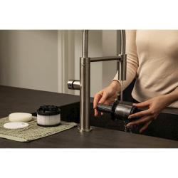 Posodo za prah s kapaciteto 0,7 l izpraznite s pritiskom na gumb – brez stika z umazanijo. Pralni mikrofilter omogoča dolgotrajno učinkovitost in svež zrak.