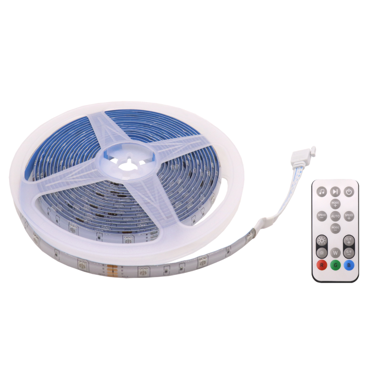 Pametni učinki RGBIC: Za razliko od RGB lahko trakovi RGBIC prikažejo več barv hkrati in tako ustvarijo dinamičen učinek mavrice v vaši sobi. RGBIC trak prikazuje več barv hkrati s priloženim daljinskim upravljalnikom. Trak ima že prednastavljene programe, ki s pomočjo RGBIC tehnologije omogočajo efekt prelivanja različnih barv.