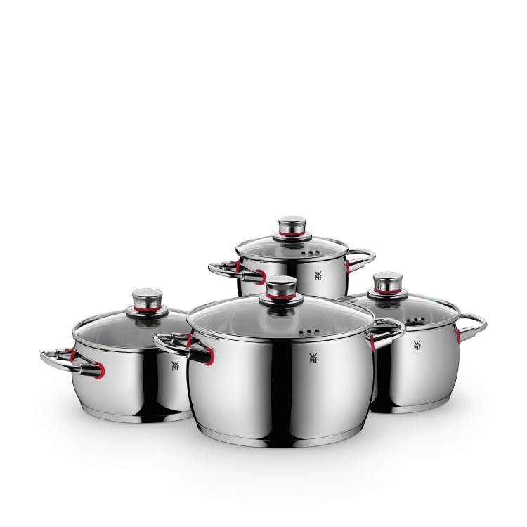 Odkrijte izjemno kuhanje z popolnim občutkom varnosti: komplet posode WMF Quality One je zasnovan za doseganje vrhunskih kuharskih rezultatov v udobju vašega doma. Zanesljivo vsakodnevno uporabo omogočajo ročaji, ki ostanejo hladni na dotik, in vrhunski materiali, ki navdušujejo tako z zmogljivostjo kot estetskim videzom.