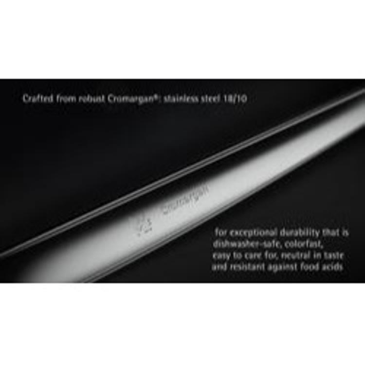 Izdelan iz trpežnega, elegantnega Cromargana®: nerjaveče jeklo 18/10, ki zagotavlja izjemno vzdržljivost in higieno. Primeren je za pomivanje v pomivalnem stroju, odporen proti razbarvanju, enostaven za vzdrževanje, nevtralen po okusu in odporen proti kislinam v živilih.