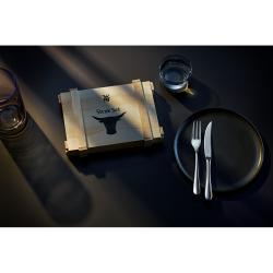Darilni set, pakiran v visokokakovostni leseni škatli, omogoča nežno in enostavno shranjevanje ter elegantno predstavitev na mizi. Odlično se poda tudi k postrežbi na prostem, na primer pri peki na žaru.