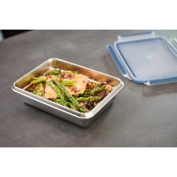 Posoda za shranjevanje hrane Tefal MASTERSEAL STAINLESS STEEL ponuja popolno vsestranskost in dolgotrajno svežino, s 304 nerjavečim jeklom za lahko, trajno in aromatsko nevtralno rešitev za shranjevanje.