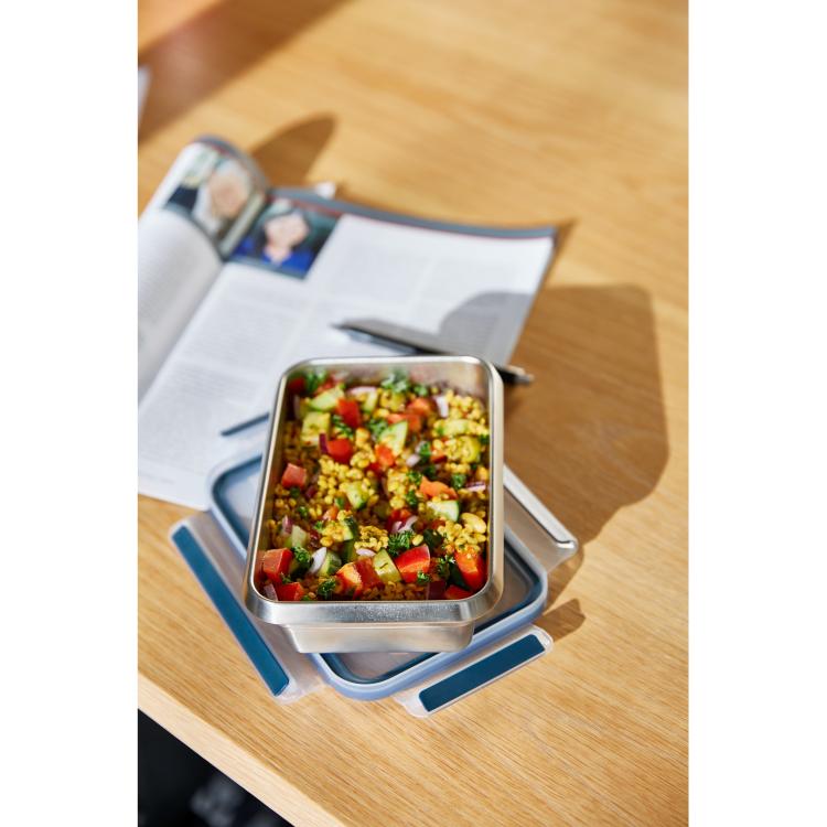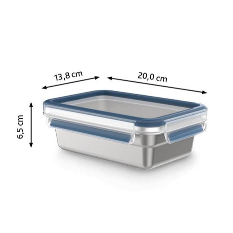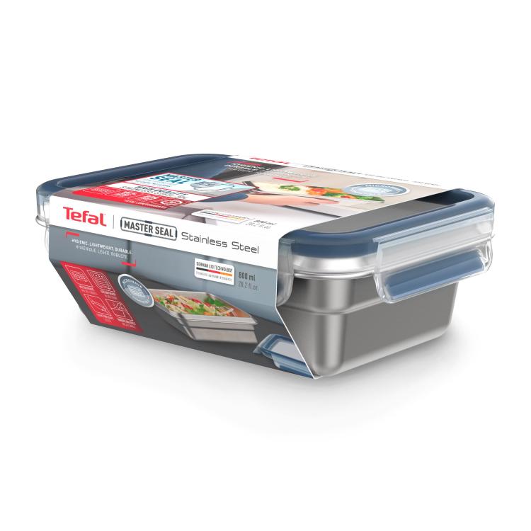 Posoda za shranjevanje hrane Tefal MASTERSEAL STAINLESS STEEL ponuja popolno vsestranskost in dolgotrajno svežino, s 304 nerjavečim jeklom za lahko, trajno in aromatsko nevtralno rešitev za shranjevanje.