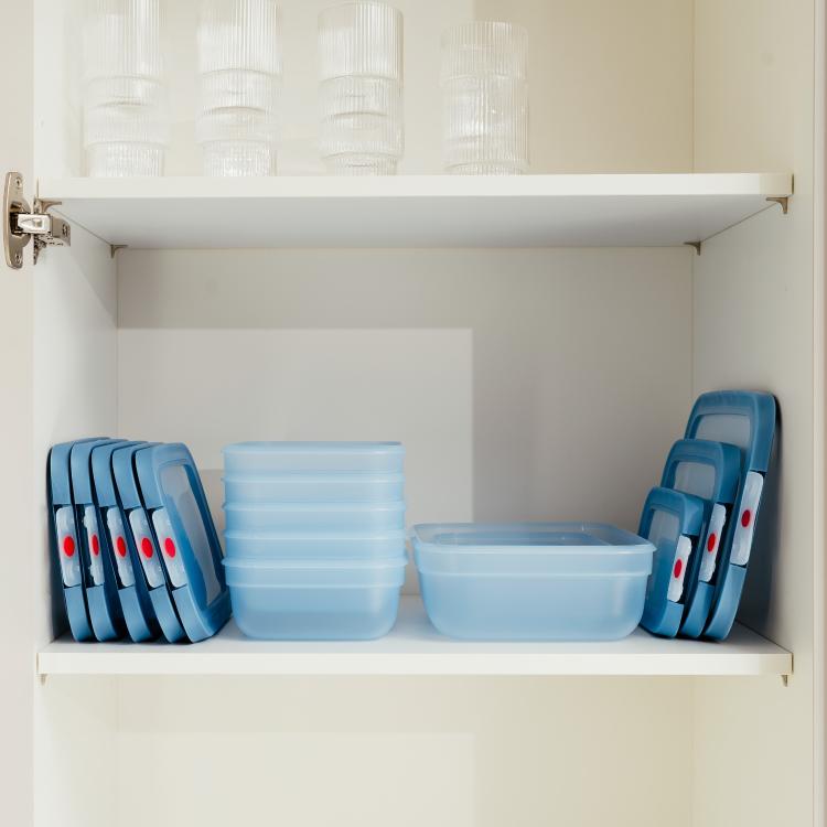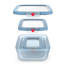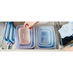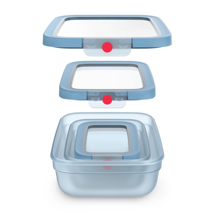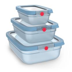 OneClick, revolucionarne posode za shranjevanje so zasnovane za udobje in zanesljivost. Te posode ponujajo preprost mehanizem za odpiranje in zapiranje z enim klikom. Močan neprepustni sistem s trdno pritrjenim notranjim tesnilom zagotavlja, da vaša hrana ostane dolgo sveža.
