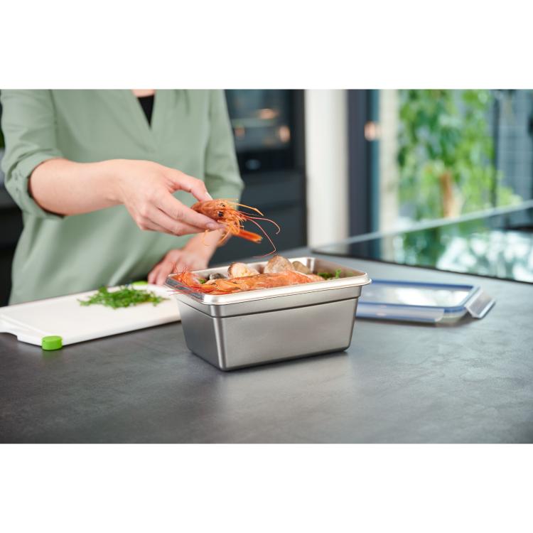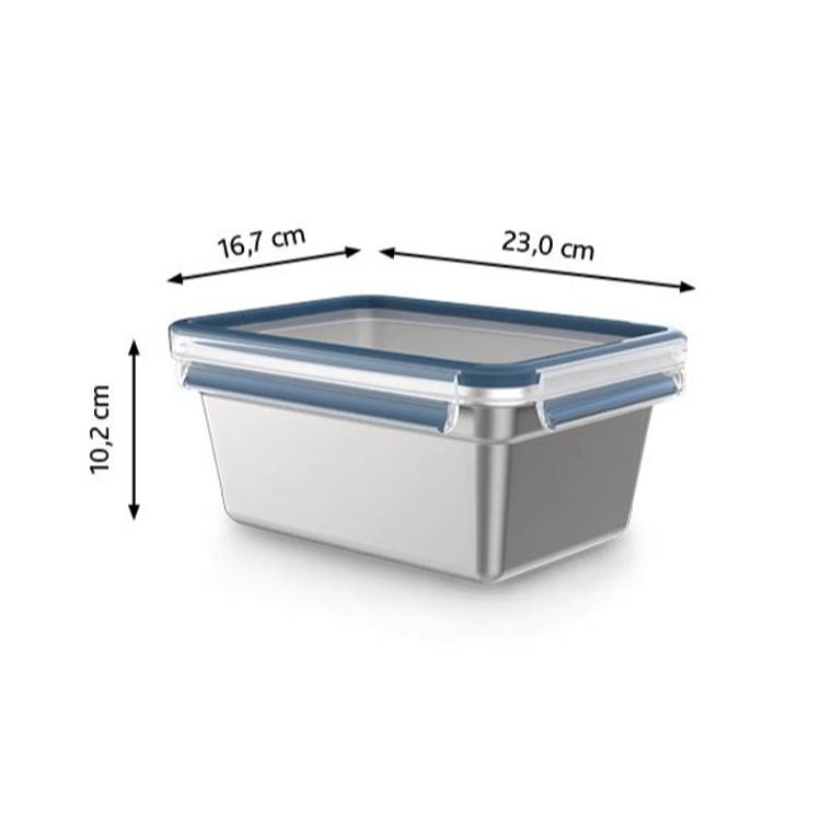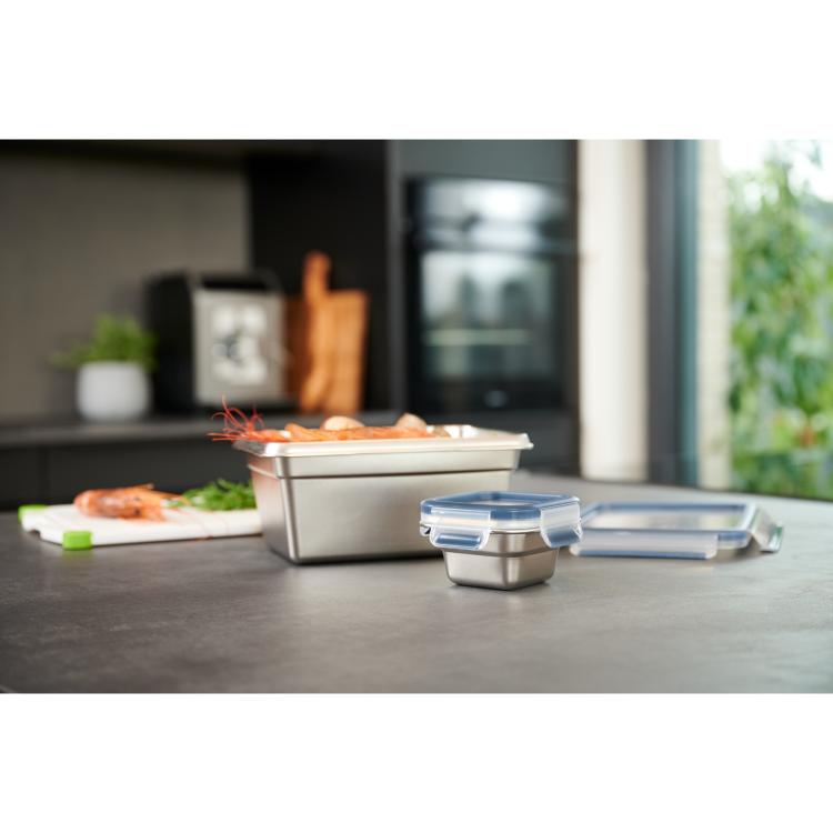 Posoda za shranjevanje hrane Tefal MASTERSEAL STAINLESS STEEL ponuja popolno vsestranskost in dolgotrajno svežino, s 304 nerjavečim jeklom za lahko, trajno in aromatsko nevtralno rešitev za shranjevanje.