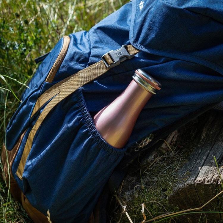 Elegantna steklenica v rožnato zlati barvi (rose gold) je še posebej šik. Izdelana je iz nerjavečega jekla 18/8 s patentirano dvojno vakuumsko izolacijo (dvojno steno). Dve plasti nerjavečega jekla (brez BPA) zapirata vakuum, kar zmanjšuje izmenjavo toplote med vsebino in okoljem. Notranja stena iz nerjavečega jekla je prav tako prevlečena z bakrom za shranjevanje toplotne energije in s tem optimizacijo izolacije. Tako vaša pijača ostane hladna do 24 ur. Če imate v hladni sezoni raje topel kakav ali čaj, bo vaš topel napitek ostal topel do 12 ur.