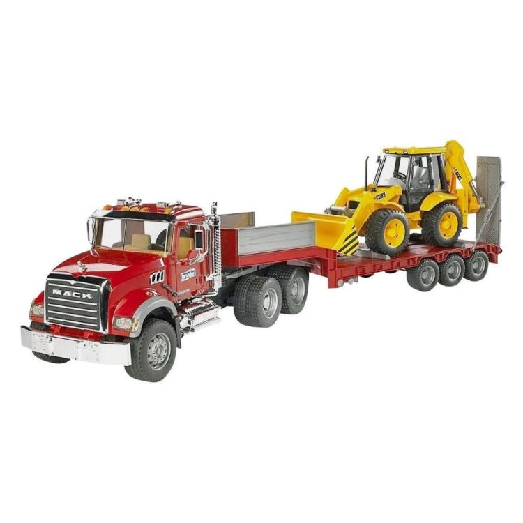 Bruder vlačilec Mack Granite s prikolico in bagarjem 02813