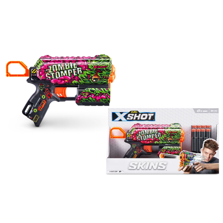 Izberi eno izmed super kulskih pištol X-Shot Skins Flux in se podaj v bitko! Na voljo je 5 različnih stilov, prav vsak izmed njih pa te bo navdušil. Vsak set vsebuje 8 mehkih izstrelkov in 1 pištolo. Odkrijte edinstven dizajn ulične umetnosti, ki se odraža na prav vsaki pištoli in odkrij visoko kakovost, natančnost, inovativni mehanizem in pa letenje izstrelkov kar do 24 m daleč!