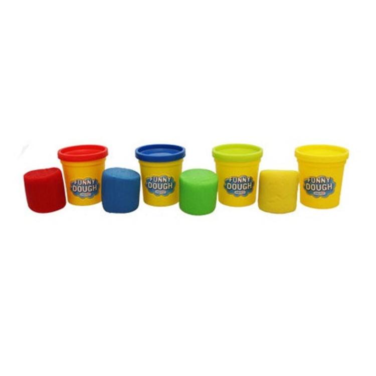 Ustvarjajte s plastelini modre, zelene, rumene in rdeče barve shranjenimi v 4 lončkih. V vsakem posameznem lončku je 85 g plastelina.