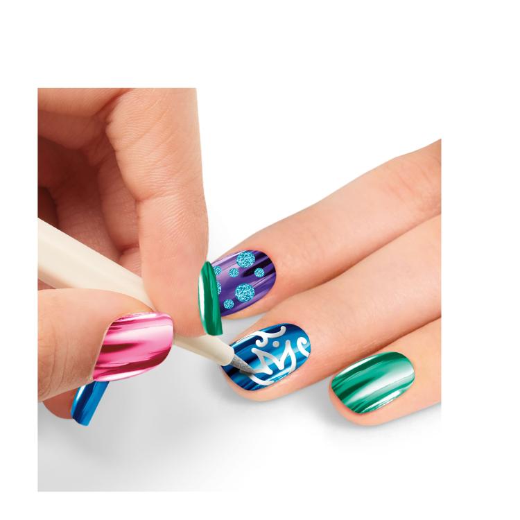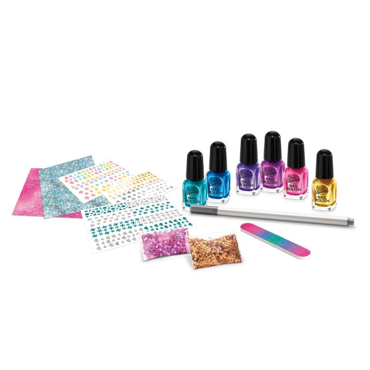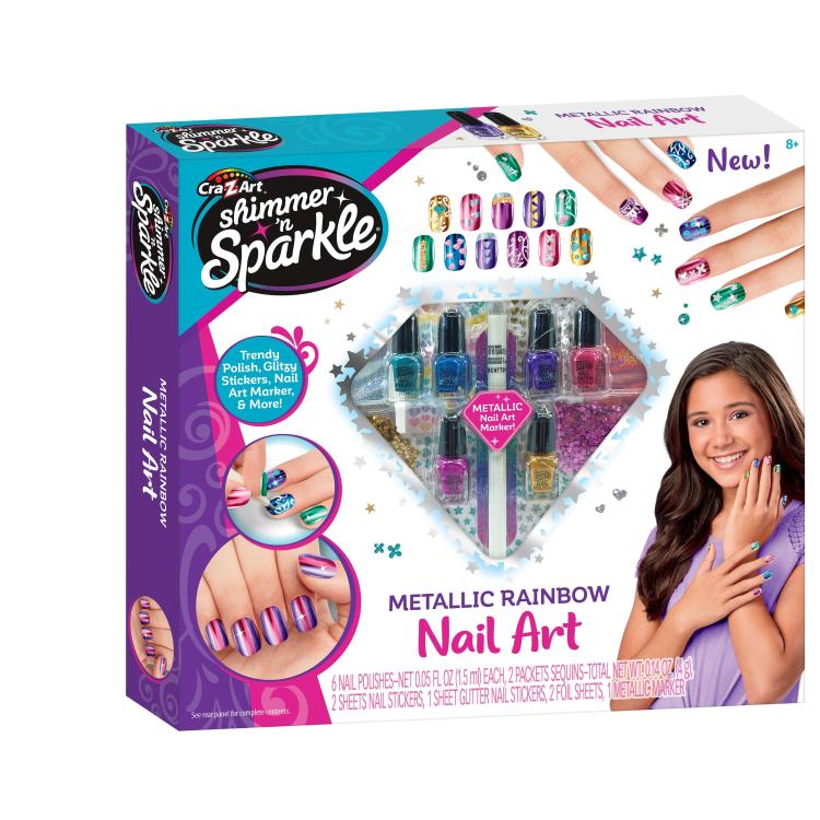 Cra-Z-Art Shimmer 'n Sparkle Metallic Rainbow Nail Art - vključuje vse, kar je potrebno za ustvarjanje vrhunskih metalic dolgih nail artov! Pobarvaj jih! Zalepi foljo ali nalepko! Dodaj bleščice za super glam sijaj!