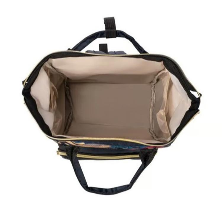 Preprost in prostoren nahrbtnik z velikim prostorom za shranjevanje in stranskimi žepi, vam omogoča, da vanj shranite vse, kar potrebujete za otroka. V nahrbtnik lahko namestite vse kar potrebujete. S pomočjo trakov za voziček ga lahko obesite tudi na voziček.
