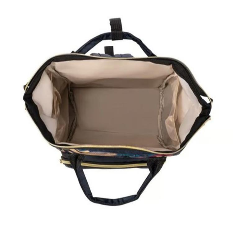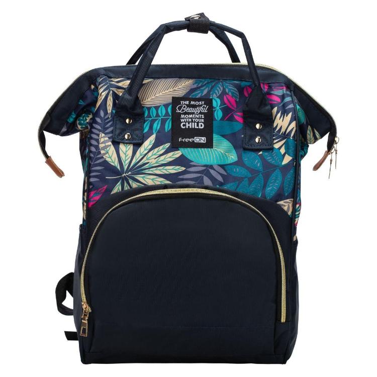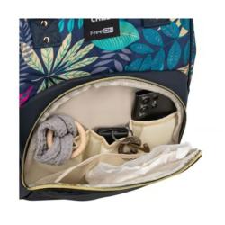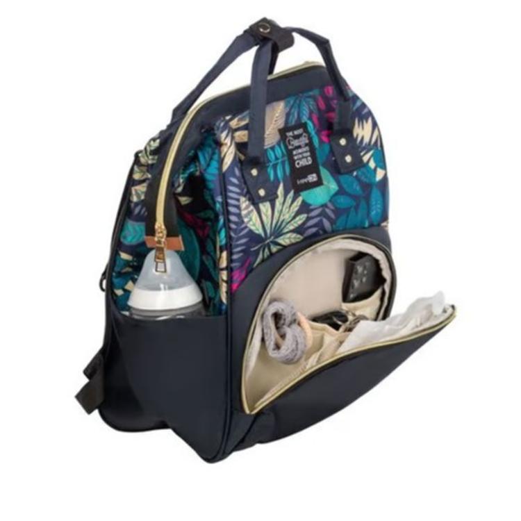 Preprost in prostoren nahrbtnik z velikim prostorom za shranjevanje in stranskimi žepi, vam omogoča, da vanj shranite vse, kar potrebujete za otroka. V nahrbtnik lahko namestite vse kar potrebujete. S pomočjo trakov za voziček ga lahko obesite tudi na voziček.