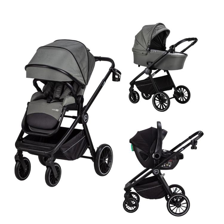 Odkrijte udobje, stil in vsestranskost — voziček FreeON 3v1 Grand v barvi army green je popolna izbira za vsako pustolovščino z vašim malčkom!
