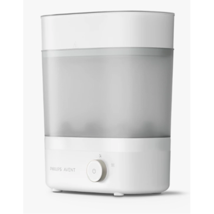 Avent Premium SCF293/00 parni sterilizator in sušilec uniči 99,9 % škodljivih mikrobov brez uporabe kemikalij. Vsebino sterilizira v le 10 minutah, sterilizira in posuši pa v 40 minutah. Po parni sterilizaciji filtriran zrak učinkovito posuši steklenice in dodatke. Če ne odpirate pokrova, ostane vsebina sterilna do 24 ur. Odlikuje ga prilagodljiva velikostjo (majhna, srednja ali velika), saj setako prilega vsem pripomočkom, ki jih želite sterilizirati. Hkrati lahko sterilizirate 6 stekleničk s širokim ali ozkim vratom. Omogoča hitro in enostavno čiščenje. Novi pladenj ščiti grelno ploščo pred kapljicami mleka, kar zmanjšuje možnost neprijetnih vonjav.