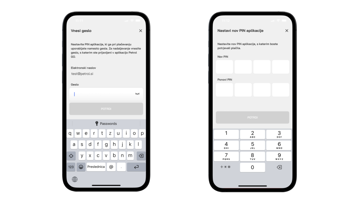 Vpišite geslo, ki ga uporabljate za prijavo v aplikacijo Petrol GO in nastavite svoj novi PIN.